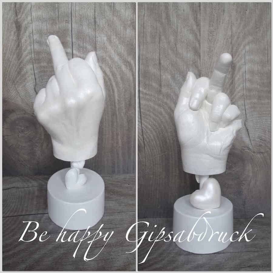 Dieses neue Werk ist mal ein ganz besonderer Handabdruck: Freundin schenkt ihn ihrem Freund zum Geburtstag. Wie man sieht, fertige ich auch Abdrücke erwachsener Hände mit den Lieblingsgesten meiner KundINNen an. Gefällt dir dieses Werk?